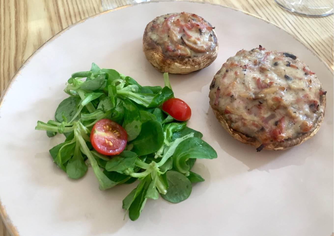- Farcir les champignons avec la préparation au fromage et jambon et faire cuire 30 min au four à chaleur tournante à 200 degré.