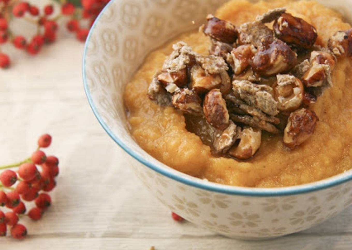 Compote pomme-kaki et son craquant sarrasin et noisette