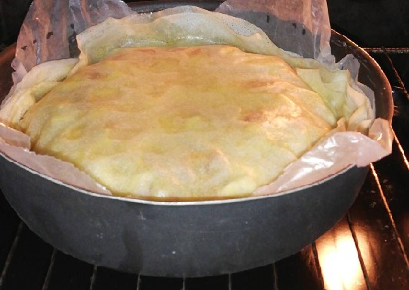 - Disposer 3 feuilles de brick dans un moule à gâteau recouvert d'une feuille de papier cuisson ou huilé.
